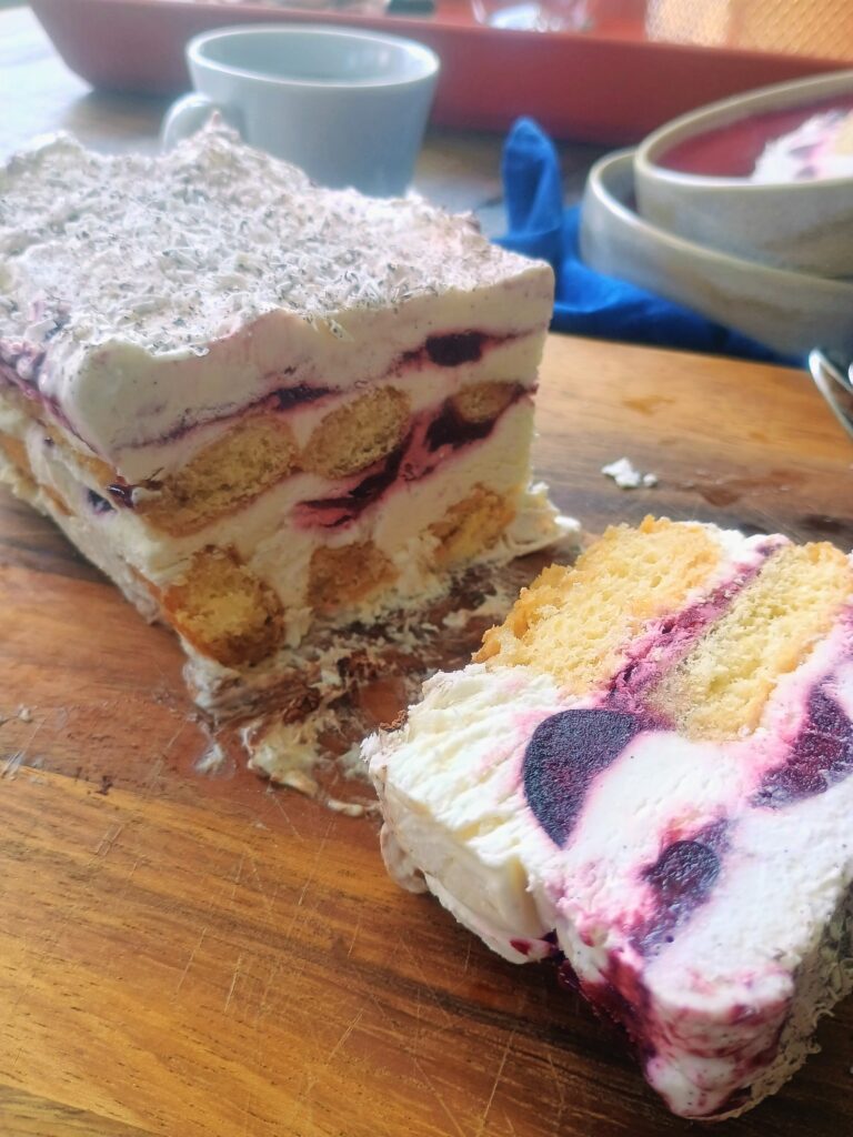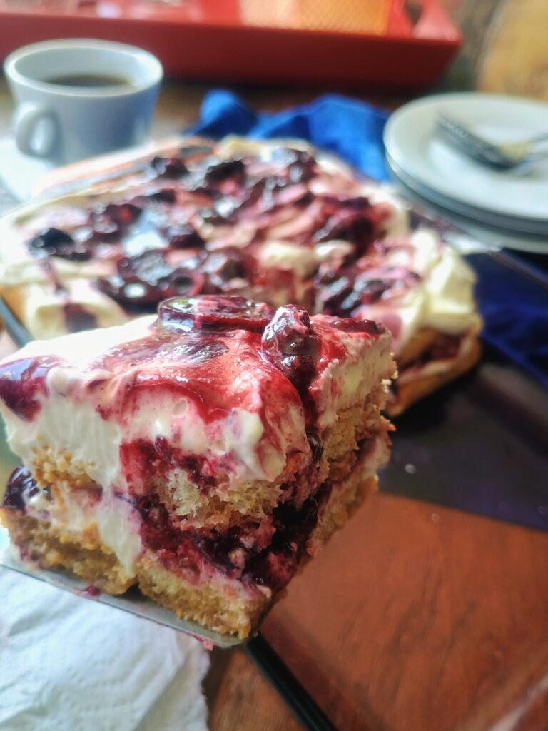 Repeat with another layer of ladyfingers, then whatever cream is left, and top with a final layer of the cherries. If you have anything remaining, just add to the top.